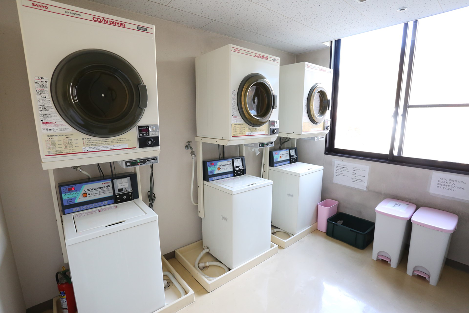 - 全自動洗濯機と乾燥機がプリペイドカードでご使用できます。