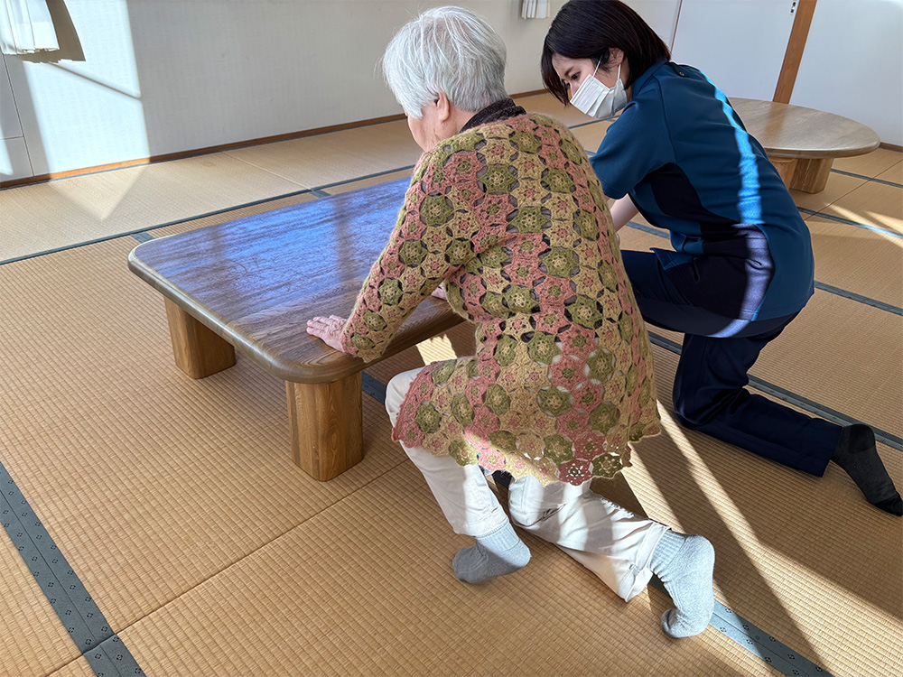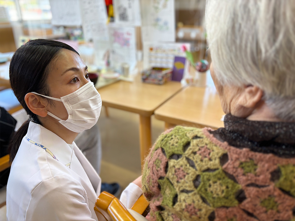 ご家族で療養されているご利用者様が随時通所して、介護、入浴、食事、リハビリのサービスを受けることができます。なお、ご希望に応じて車による送迎をしております。